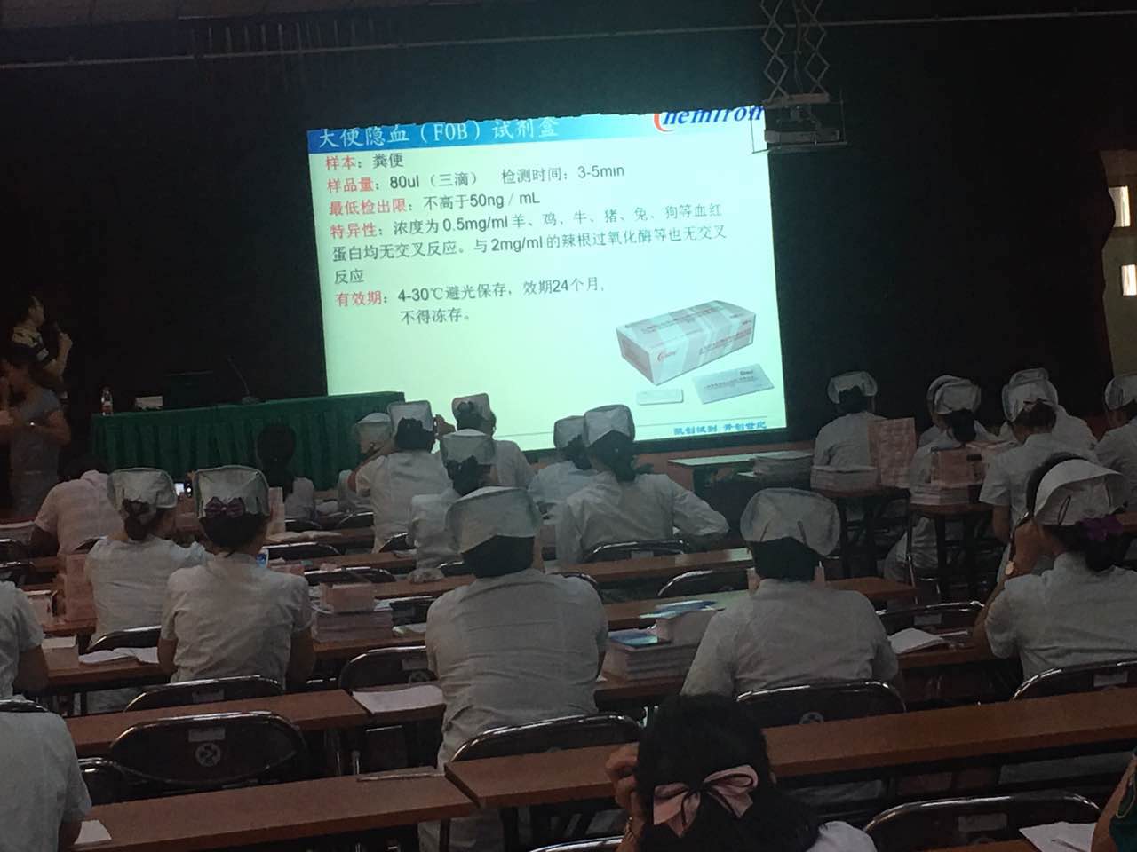 此次講座由上海凱創生物技術有限公司商務部負責專業培訓,講述POCT膠體金法的技術介紹及我公司的大便隱血檢測試劑盒(膠體金法)的產品介紹、技術原理、檢測原理、操作流程、注意事項、參考范圍等等。